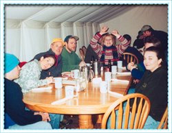 drawn sleigh ride to a tent in the woods where we